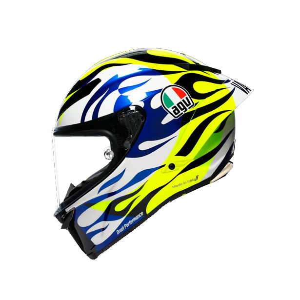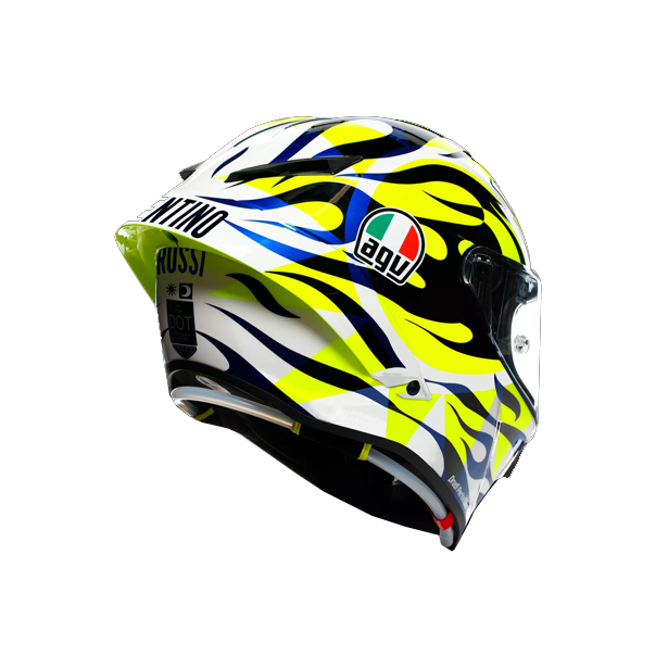 The helmet created for MotoGP™ is now available to every rider. Pista GP RR is an exact replica of the AGV helmet used in races by world champions. It has therefore received the new FIM homologation, which certifies the highest possible level of protection, even against any dangerous twisting of the head. Due to the exclusive AGV Extreme Safety design protocol, Pista GP RR already exceeds the requirements of the strict ECE22.06 homologation. Every detail is designed to ensure ultimate performance. The Extreme Carbon shell in100% carbon fiber guarantees extraordinary lightness, which makes it effortless to wear. Its shapes and metal air vents are studied in the wind tunnel and tested by AGV athletes in order to ensure the best aerodynamic penetration and the greatest stability at high speeds, also due to the innovative profile of the rear PRO Spoiler. Boasting 5 mm thickness,the Optical Class 1 Ultravision visor is an integral part of the protector that allows 190° panoramic vision, and 85° vertical vision. This means the rider sees the track, adversaries, and obstacles more clearly, before anyone else, even in racing position tucked into the frame. The exclusive 360° Adaptive Fit system allows for complete customization of the interior, giving the rider the possibility to select the ideal thickness for the upper part of the head, nape, and cheeks. This essential level of comfort leaves the rider free to concentrate on nothing but their goal. Every detail is designed with winning in mind. The Perfection of Obsession.