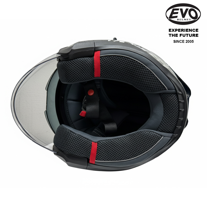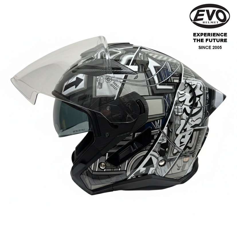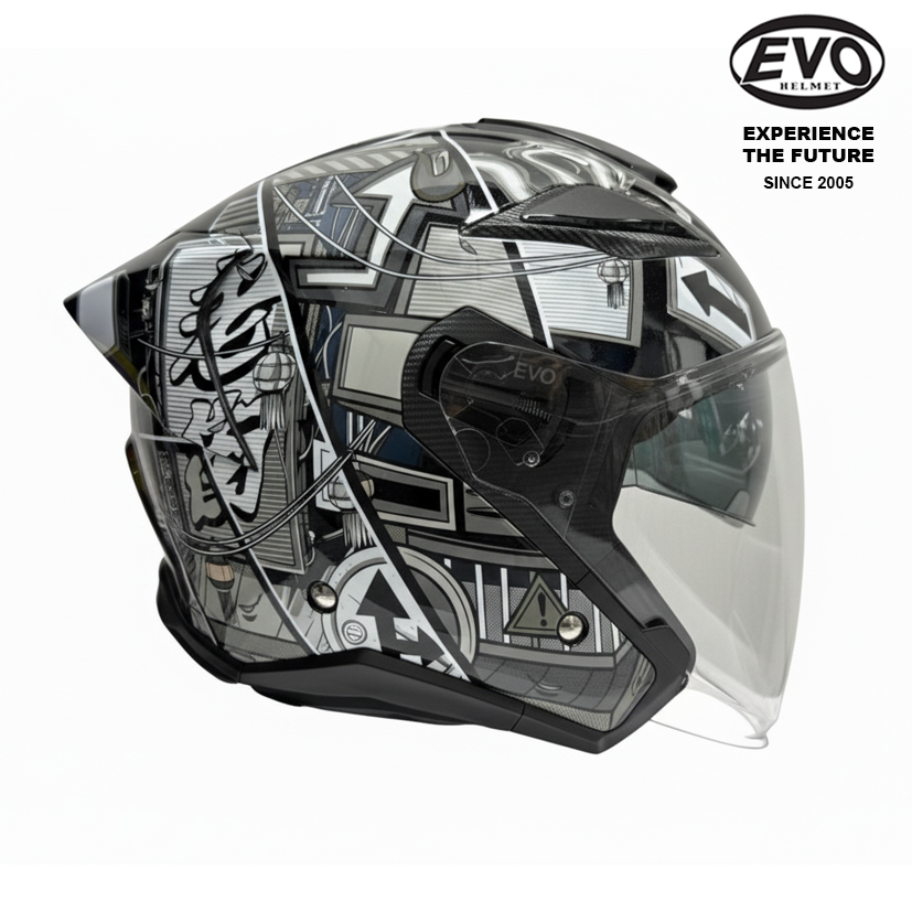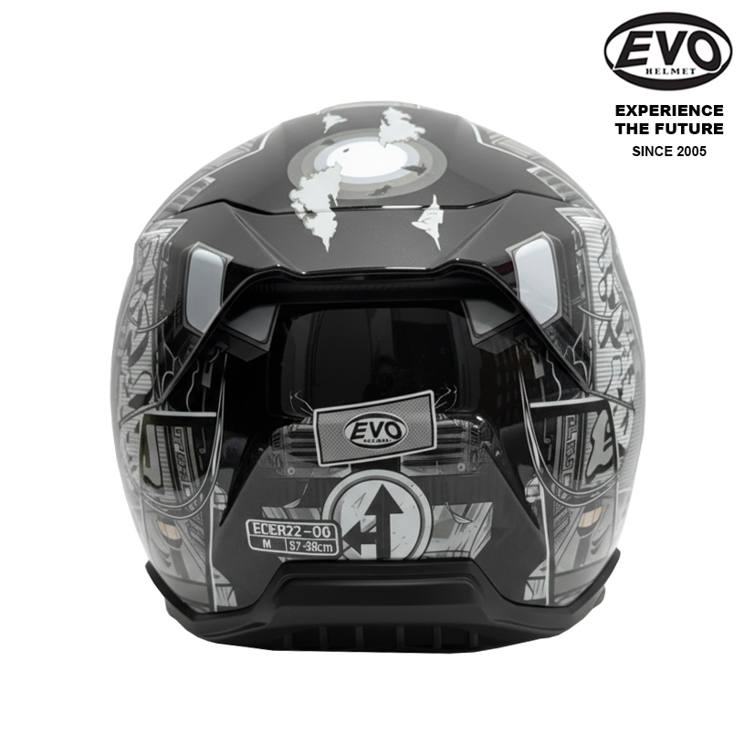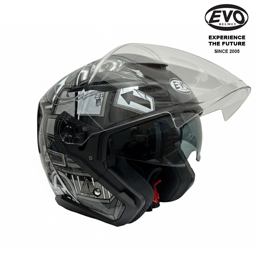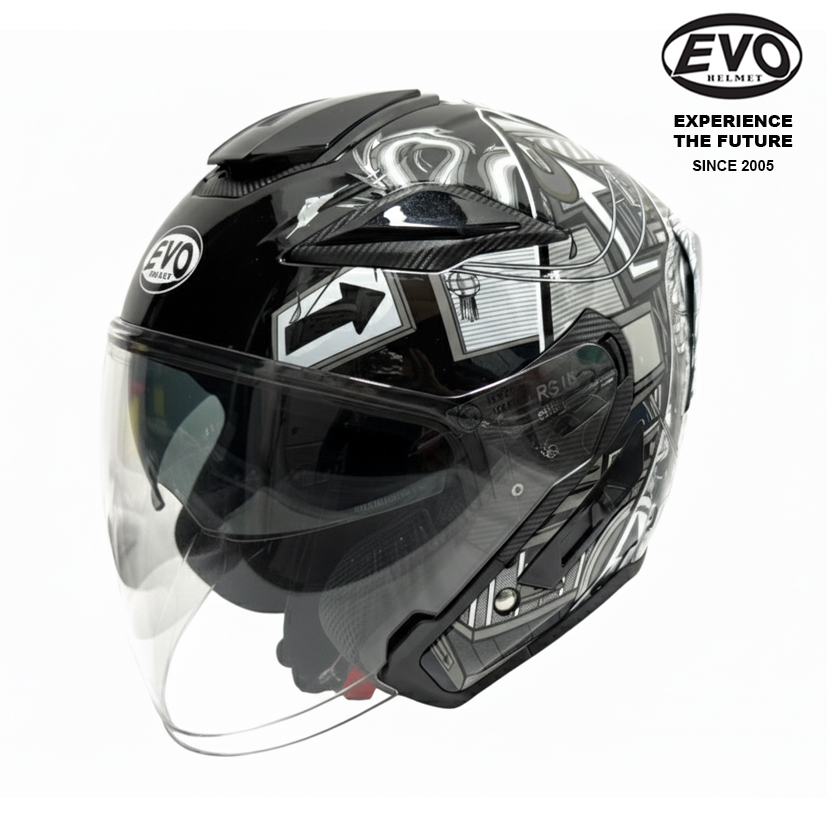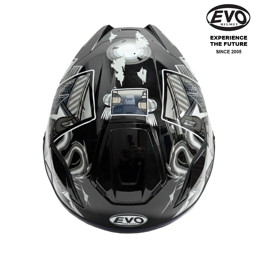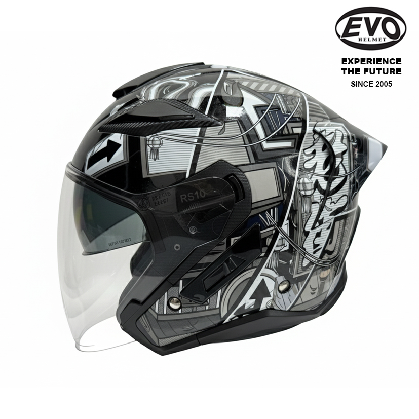 The EVO RS10 Helmet is ABS shell with sun visor and spoiler.