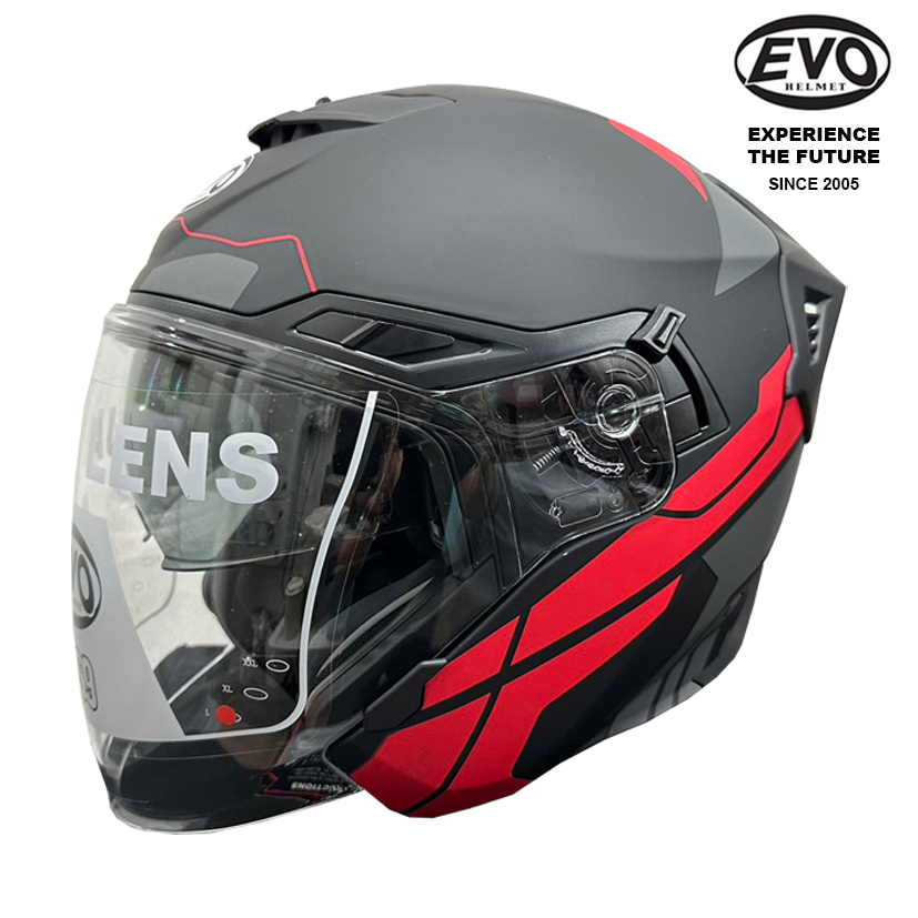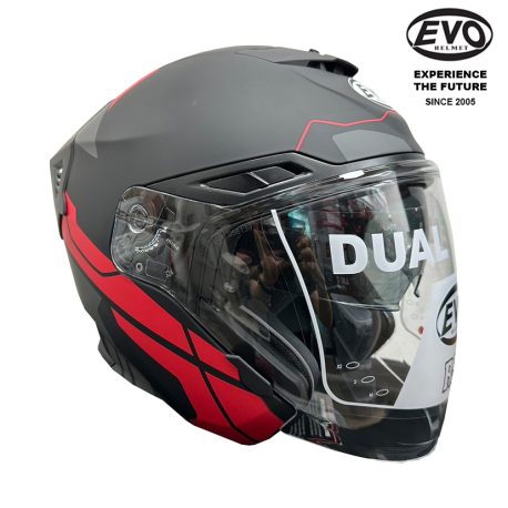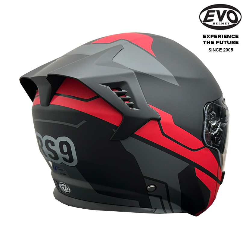 The EVO Helmet is ABS shell with sun visor and spoiler.