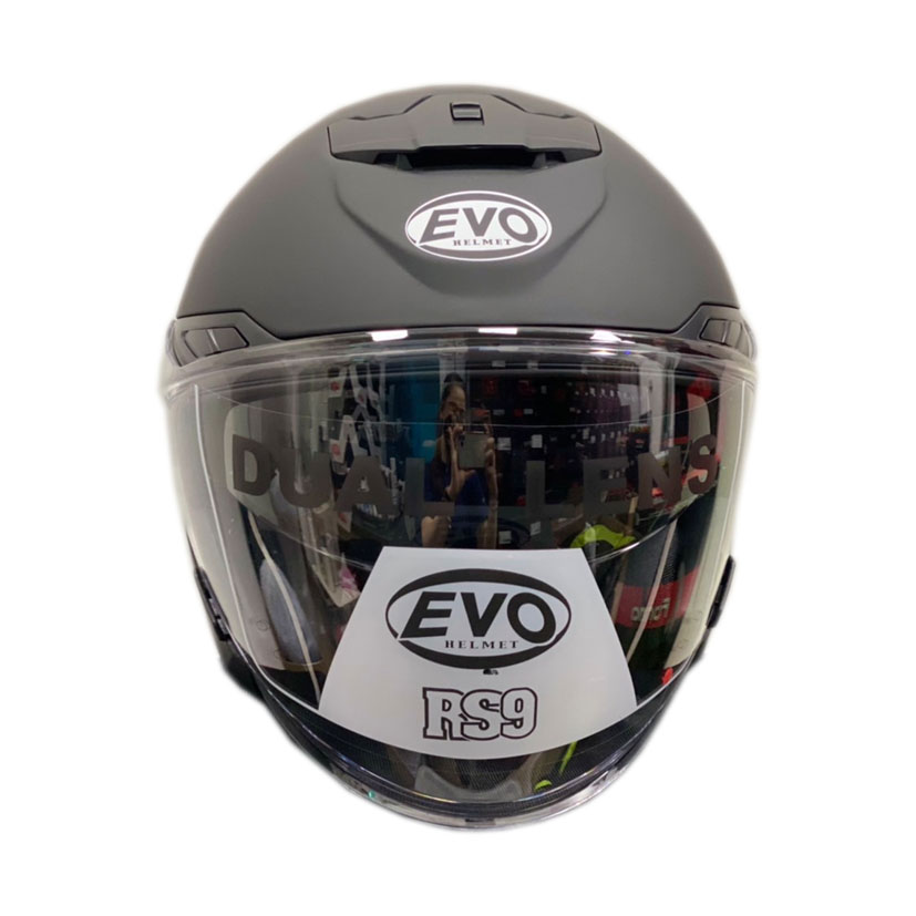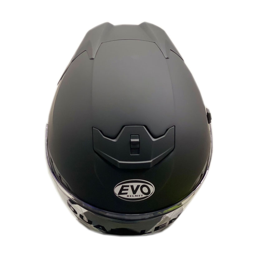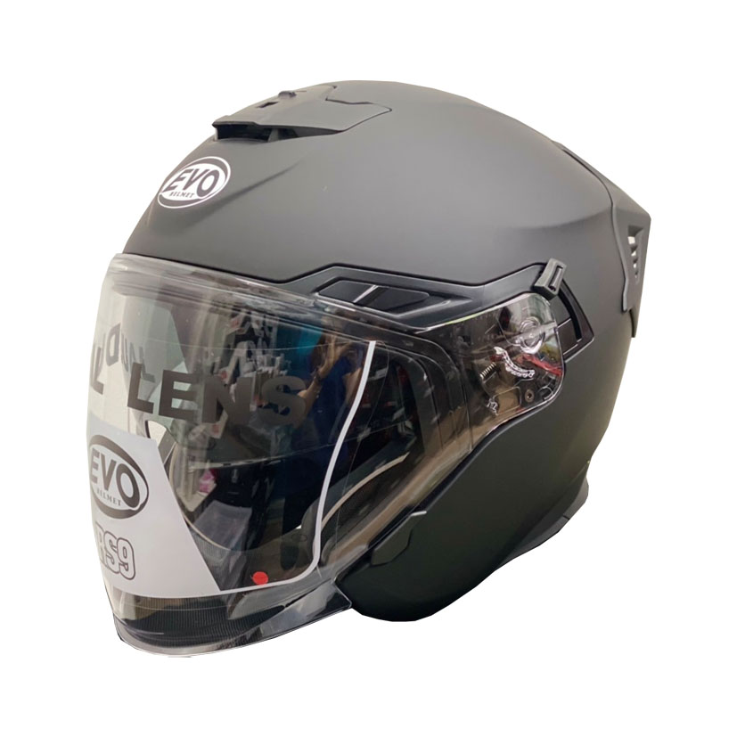The EVO Helmet is ABS shell with sun visor and spoiler.