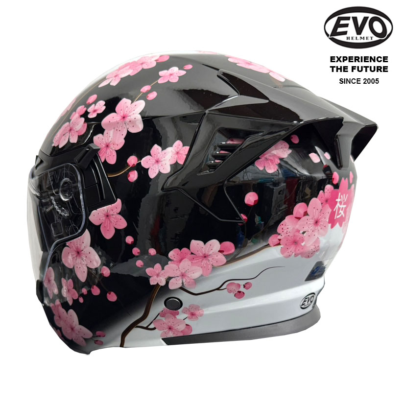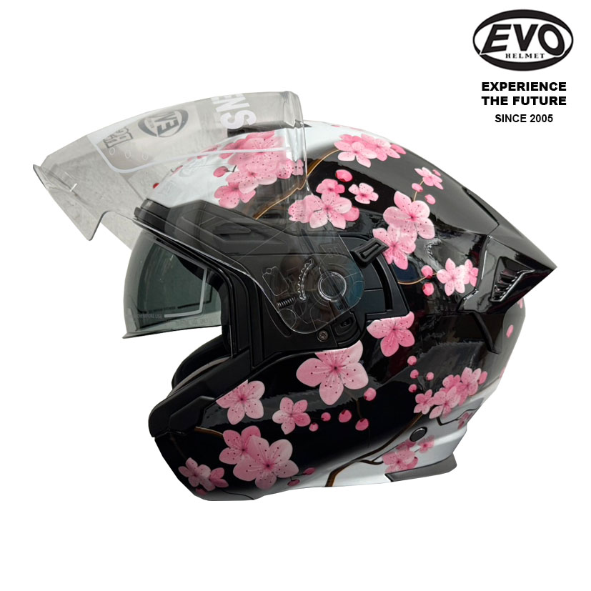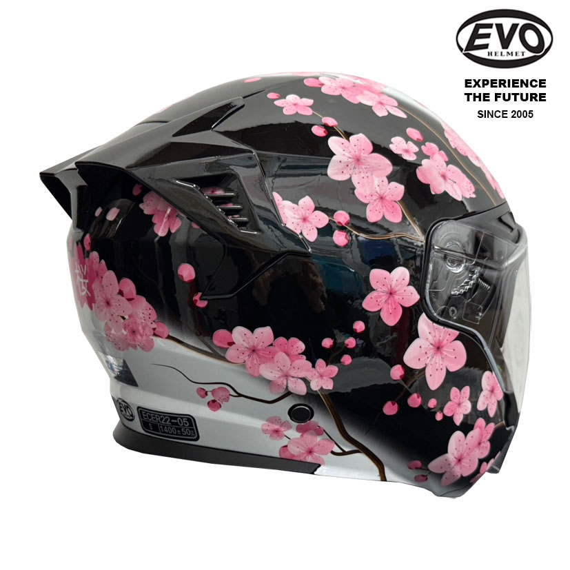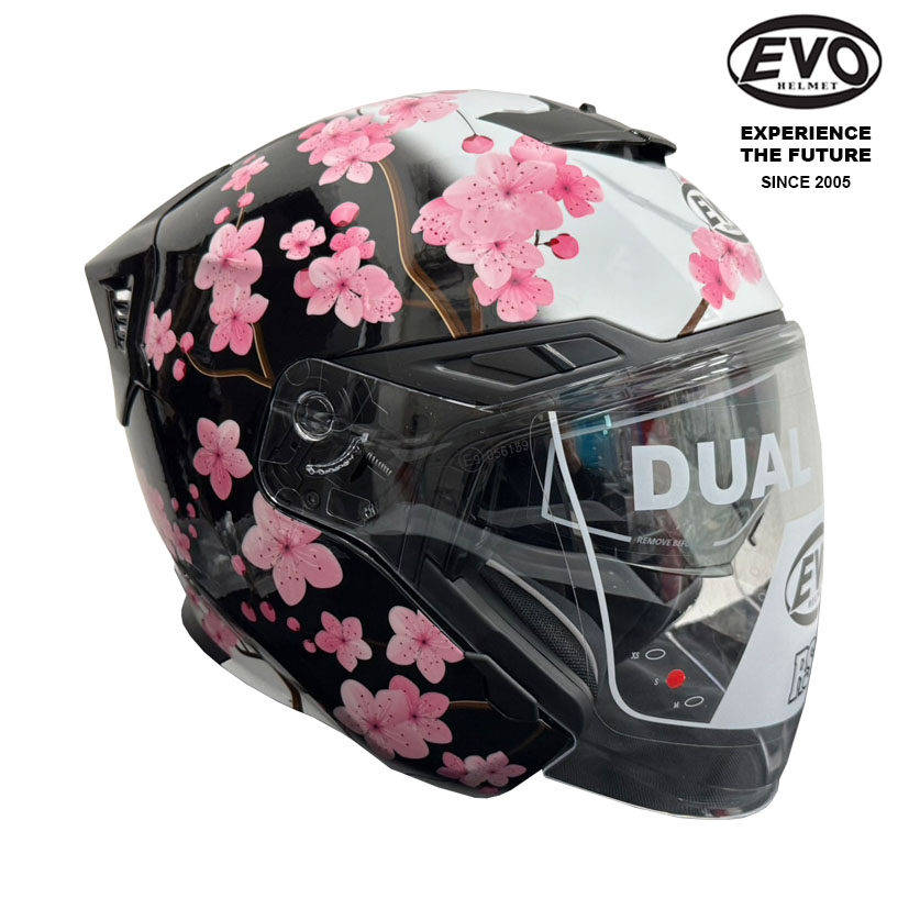 The EVO Helmet is ABS shell with sun visor and spoiler.