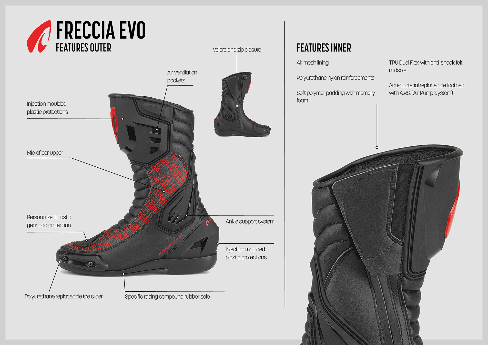 Whether you’re carving up city streets or taking on the track, the Forma Freccia EVO boots provide unmatched safety, comfort, and performance for the discerning rider.